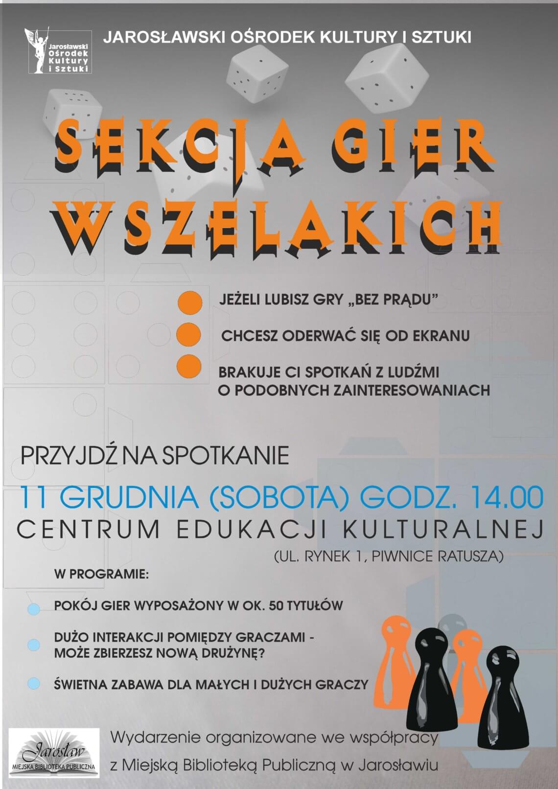 Jeżeli lubisz gry „bez prądu”, chcesz oderwać się od ekranu i spotkać ludzi o podobnych zainteresowaniach, przyjdź na spotkanie 11 grudnia (sobota) o godz. 14:00 do Centrum Edukacji Kulturalnej, ul. Runek 1 (Piwnice Ratusza).