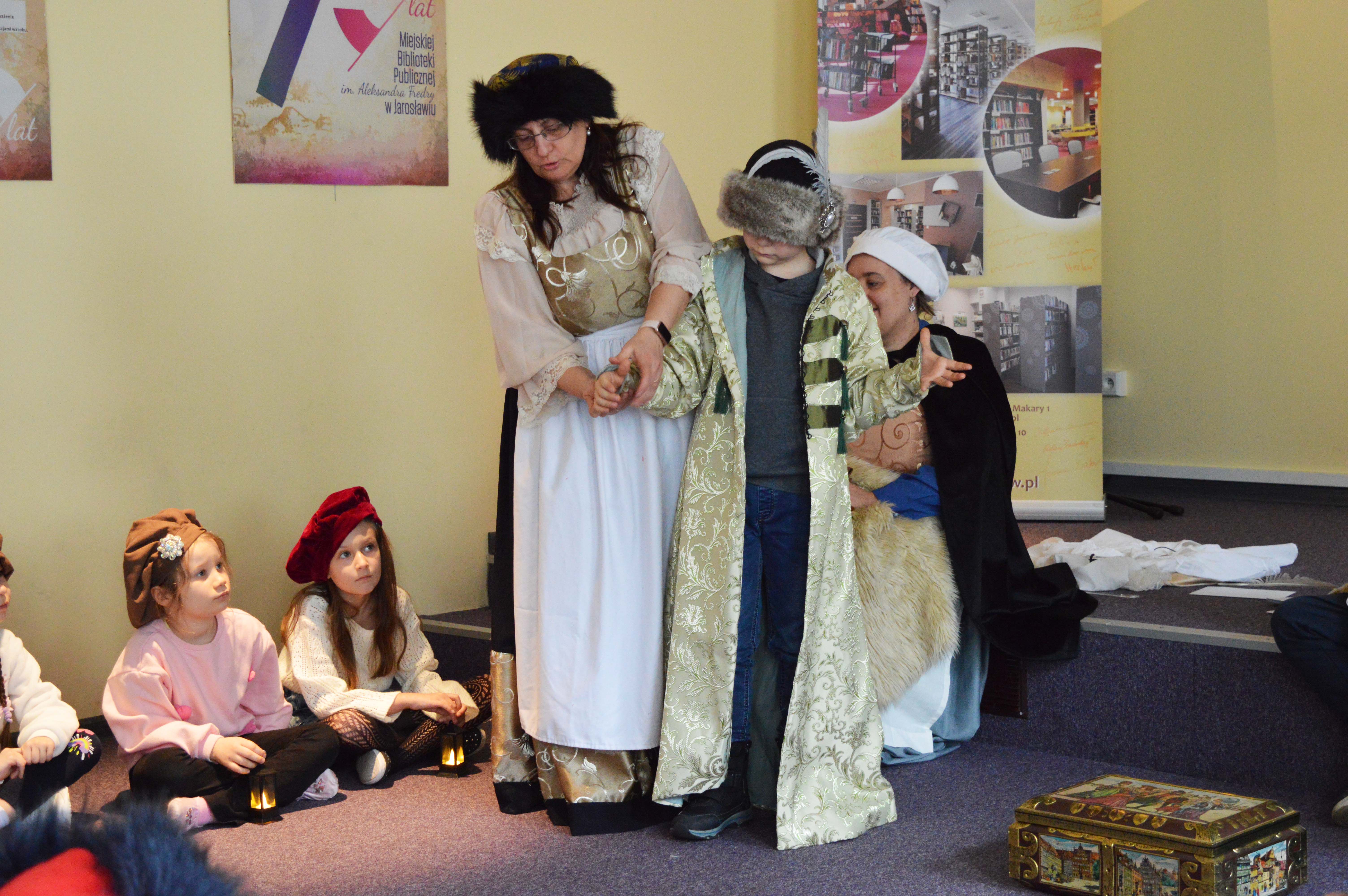 Mali uczestnicy z ogromnym zaangażowaniem włączyli się w budowanie atmosfery legendy, animując opowieść okrzykami i gestami, które nadawały historii wyjątkowy charakter. Dodatkową atrakcją była możliwość wcielenia się w bohaterów dawnych czasów. Dziewczynki z radością przemieniały się w damy i mieszczki, a chłopcy mogli przymierzyć prawdziwy żupan i poczuć się jak mieszkańcy historycznego Jarosławia.