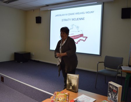 Uczestnicy spotkania obejrzeli barwną i bardzo ciekawą prezentację multimedialną o przedwojennym Jarosławiu i powiecie jarosławskim. Prezentacja zawierała również niepowtarzalne zdjęcia zabytków naszego miasta, które wraz z wybuchem I wojny światowej uległy zniszczeniu.