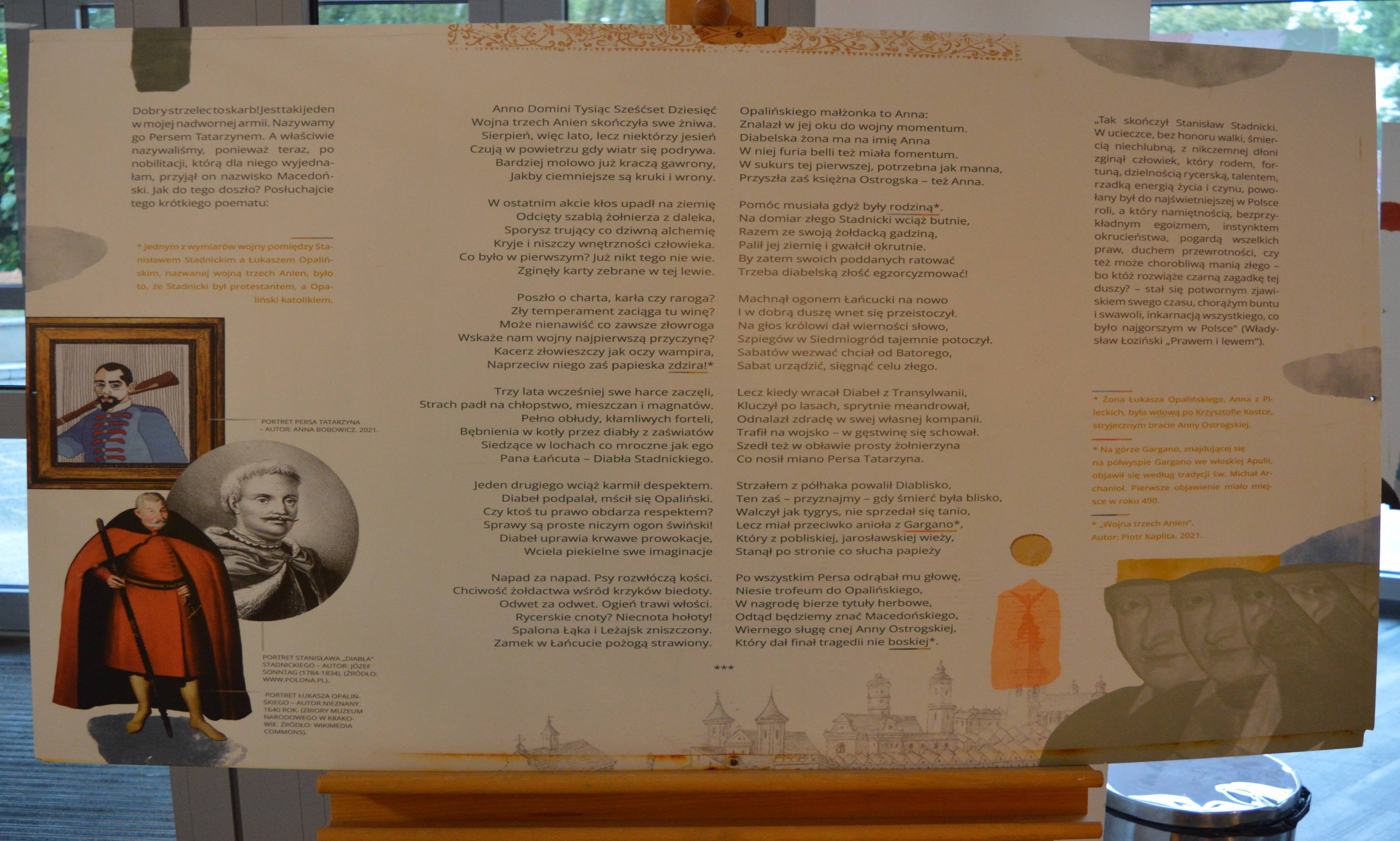 Zapraszamy do Galerii w Bibliotece Głównej na wystawę pt. „Poczet dawnych Jarosławian”. Wystawa prezentuje sylwetki dawnych mieszkańców Jarosławia, bardziej znanych, jak i mniej znanych, którzy wnieśli swój nieoceniony wkład w rozwój i historię miasta, szczególnie w tzw. „złotym XVII wieku Jarosławia”. Wystawa przybliża historię miasta poprzez prezentację wyjątkowych sylwetek jego mieszkańców. Autorem życiorysów postaci historycznych jest Piotr Kaplita z Muzeum Kamienica Orsettich w Jarosławiu, a pomysłodawcą wystawy – Zespół Szkół Plastycznych im. Stanisława Wyspiańskiego. Autorką portretów dawnych jarosławian jest Anna Bobowicz – absolwentka jarosławskiego Plastyka.
