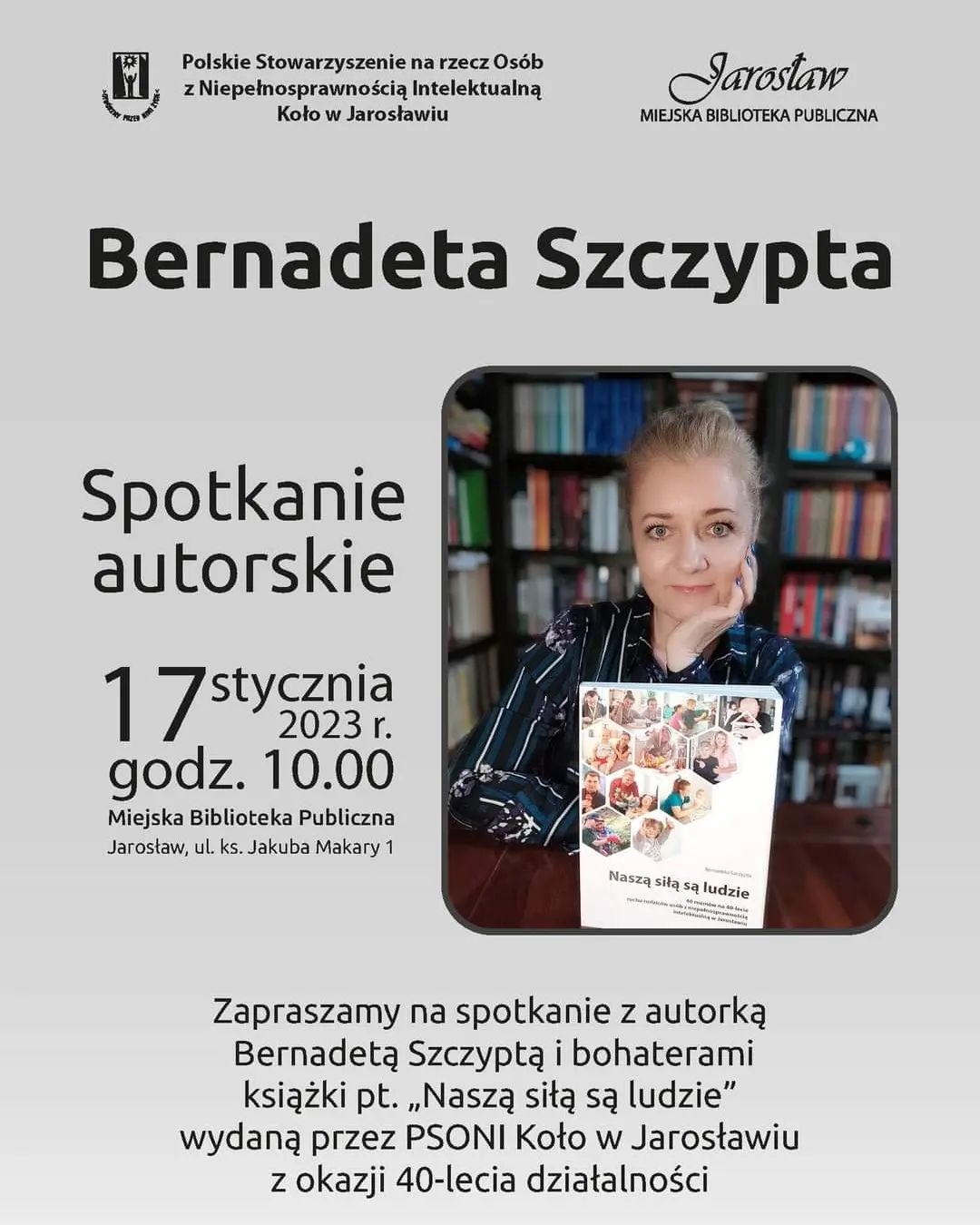 17 stycznia br. o godz. 10:00 odbędzie się spotkanie promujące książkę „Naszą siłą są ludzie”. Publikacja powstała z okazji 40-lecia ruchu rodziców osób z niepełnosprawnością intelektualną w Jarosławiu. Serdecznie zapraszamy!