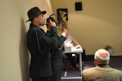 Na zakończenie wieczoru, nie zabrakło kwiatów i życzeń. Autor sygnałem myśliwskim „Zaproszenie na posiłek” zaprosił na poczęstunek i rozmowy przy kawie.