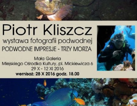 Mała Galeria MOK już teraz zaprasza na niezwykłą wystawę podwodnej fotografii pt. "Podwodne impresje – trzy morza", której wernisaż zaplanowano na dzień 28 października 2016 r. o godz. 18.00. Autorem niezwykłych fotografii jest Piotr Kliszcz. Z zawodu ortopeda i traumatolog, specjalista rehabilitacji medycznej. Z zamiłowania fotograf i nurek.