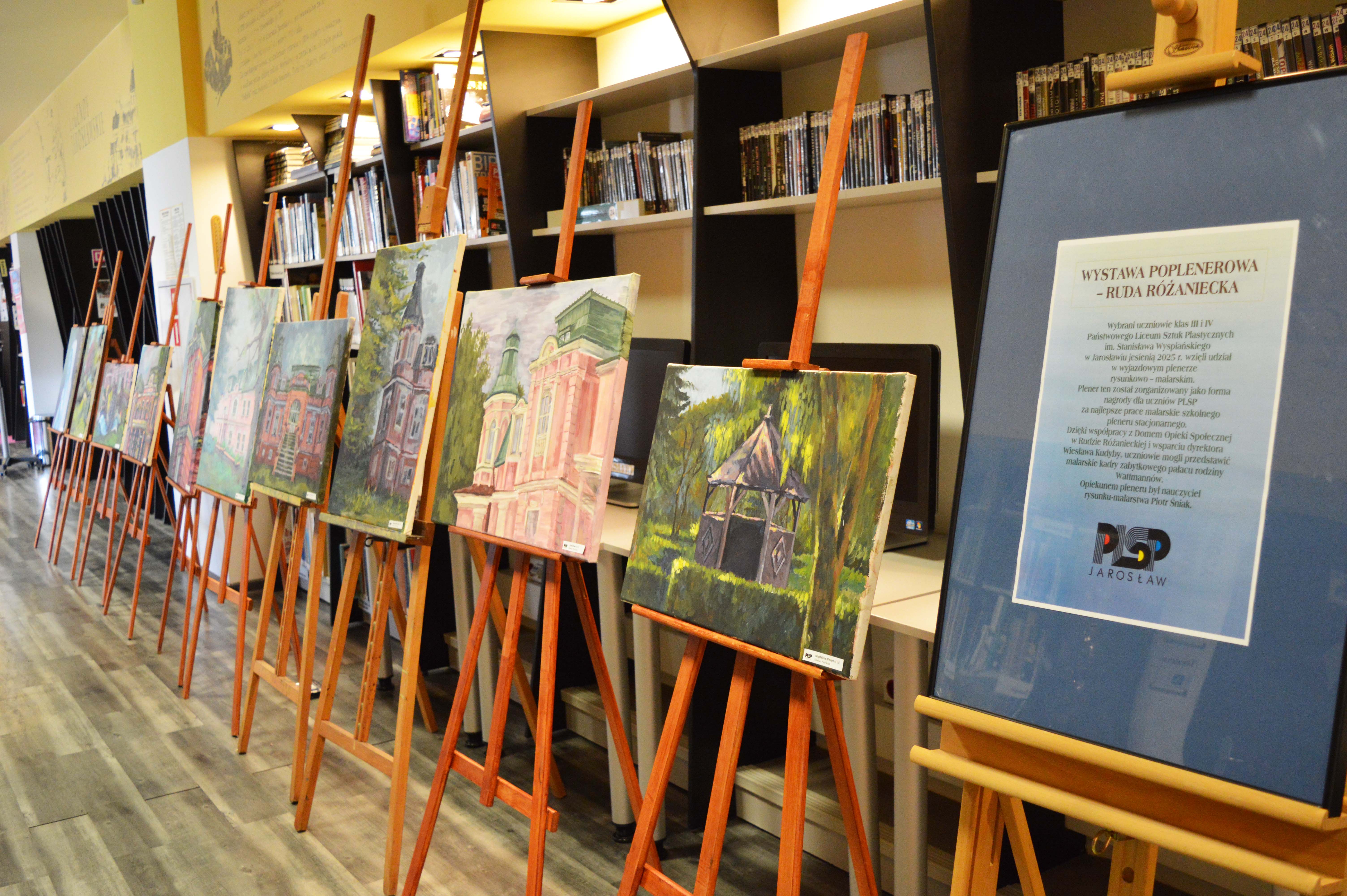 Zapraszamy do obejrzenia wystawy poplenerowej uczniów z klas III i IV Państwowego Liceum Sztuk Plastycznych im. Stanisława Wyspiańskiego w Jarosławiu. Plener został zorganizowany jesienią 2025 roku jako forma nagrody dla uczniów PLSP za najlepsze prace malarskie pleneru stacjonarnego. Dzięki współpracy z Domem Opieki Społecznej w Rudzie Różanieckiej, uczniowie mogli przedstawić obrazy zabytkowego pałacu rodziny Wattmannów. Opiekunem pleneru był nauczyciel rysunku – malarstwa Piotr Śniak.