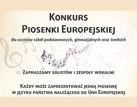 Serdecznie zapraszamy uczniów szkół podstawowych, gimnazjalnych oraz średnich do udziału w konkursie Piosenki Europejskiej.