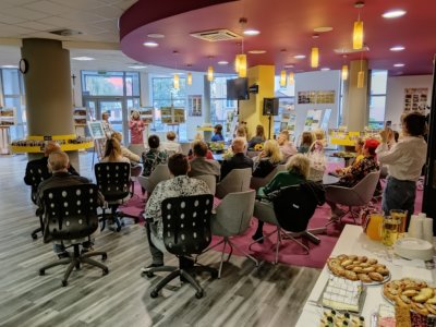 Na wernisaż licznie przybyli znajomi i przyjaciele autorek oraz czytelnicy biblioteki. Spotkanie miało wyjątkowy charakter, który oprócz pięknych fotografii tworzyła bieszczadzka muzyka i zaproszeni goście. Miłym akcentem na zakończenie były rozmowy przy kawie i ciastku.