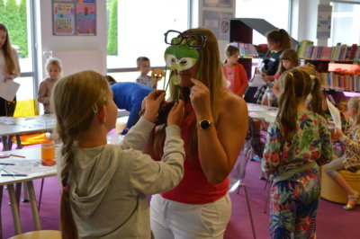 Jak co roku, nie zabrakło rozmów o ekologii i bezpiecznych wakacjach. W ramach zajęć plastycznych uczestnicy samodzielnie przygotowali kolorową fotobudkę i zorganizowali sesję zdjęciową! Jak zwykle, młodzi czytelnicy korzystali z przygotowanych kolorowanek, tworząc wakacyjną galerię bajkowych postaci. Zainteresowaniem cieszyły się też gry na konsolę X-box, m.in.: gry ruchowe Kinect Sports oraz Dance Central. W naszych zajęciach wzięli udział czytelnicy indywidualni oraz grupy półkolonijne ze Szkoły Podstawowej nr 2 w Jarosławiu oraz dzieci z Bajkowego Przedszkola i Towarzystwa Przyjaciół Dzieci w Jarosławiu.