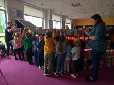 Pierwszy miesiąc letniego wypoczynku już za nami. Dzieci spędzające wakacje w mieście odwiedziły naszą bibliotekę. Gościliśmy grupy zorganizowane i czytelników indywidualnych. Dla wszystkich przygotowaliśmy ciekawą ofertę, m.in.: zajęcia plastyczne, literackie, edukacyjne, pokazy bajek, gry planszowe i wideo. Nasze propozycje przybliżyły dzieciom patronów roku 2023 Aleksandra Fredrę i Mikołaja Kopernika. „Bajki Fredry na wesoło”, to zajęcia głośnego czytania. Tym razem poznaliśmy utwory:„Małpa w kąpieli”, „Paweł i Gaweł” czy „Osiołkowi w żłoby dano”. Dzieci chętnie wcielały się w role bohaterów wierszy, zamieniając bibliotekę w mini teatr.