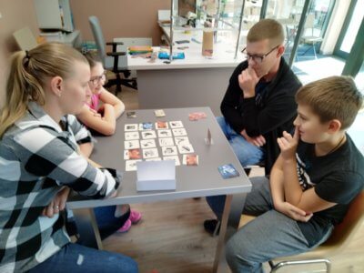 W pierwszym etapie uczestnicy rywalizowali w grze „Tajniacy: obrazki” wcielając się w rolę szefów siatki szpiegowskiej oraz ich tajniaków. Nie zabrakło zaangażowania, uśmiechów i dobrej zabawy. Kolejny etap wymagał wykazania się spostrzegawczością i refleksem, rywalizując w grze „Dobble”. W drugiej rundzie uczestnicy zostali podzieleni na grupę rodziców i grupę dzieci, by w swoim gronie przejść serię logicznych testów z gry „Cortex: wyzwania”. Cztery najlepsze osoby z każdej grupy przeszły do rundy finałowej by zagrać w „Dixit”. W tej grze finaliści wymyślali hasła do wieloznacznych, kolorowych kart i próbowali wytypować kartę odzwierciedlającą skojarzenie przeciwnika. Turniej okazał się świetną zabawą dla wszystkich. Uczestnicy od początku do końca byli pełni entuzjazmu i ducha rywalizacji. Jednoznacznie turniej wygrała ośmiolatka, a drugie miejsce zajął jeden z rodziców. Na koniec wszyscy gracze zostali uhonorowani pamiątkowymi dyplomami, zakładkami oraz słodkościami, a zwycięzcy dostali dodatkowo upominki w postaci gry karcianej i książek. W turnieju wzięło udział 16 osób.