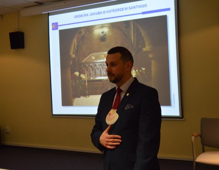 Niezwykle ciekawe spotkanie, poparte prezentacją multimedialną przybliżyło nie tylko historię Drogi Św. Jakuba ale też samo życie i postać Świętego.