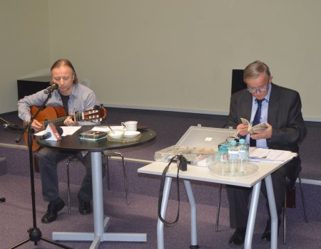 Podczas spotkania z krótkim recitalem wystąpił Jerzy Gągoł, jarosławski bard, autor melodii do wierszy znanych poetów polskich, twórca muzycznej audycji radiowej "Piosenki w które warto się zasłuchać". Tym razem wysłuchaliśmy pieknych aranżacji poezji śpiewanej, w tym dwa utwory Henryka Grymuzy.