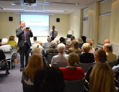 8 stycznia br miłośnicy polskiej przyrody mięli okazję spotkać się ze znanym podróżnikiem, fotografem i naukowcem – dr Sebastianem Bielakiem. Nasz gość zabrał nas w wirtualna podróż po Wyspie Wolin – perle Zachodniego Pomorza. Wyspa Wolin to jedno z najciekawszych oraz najbardziej zróżnicowanych pod względem przyrodniczym i krajobrazowym miejsc w naszym kraju. Klifowe wybrzeże Bałtyku, piaszczyste plaże i wydmy, łąki, lasy, jeziora polodowcowe, a także delta Świny z archipelagiem bagnistych wysepek – to niezwykłe miejsca, które ujęte w fotografiach Pana Sebastiana tworzyły ciekawą prezentację multimedialną.