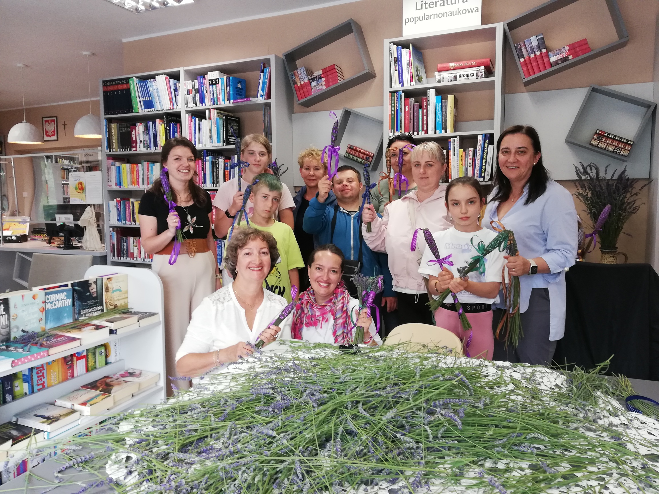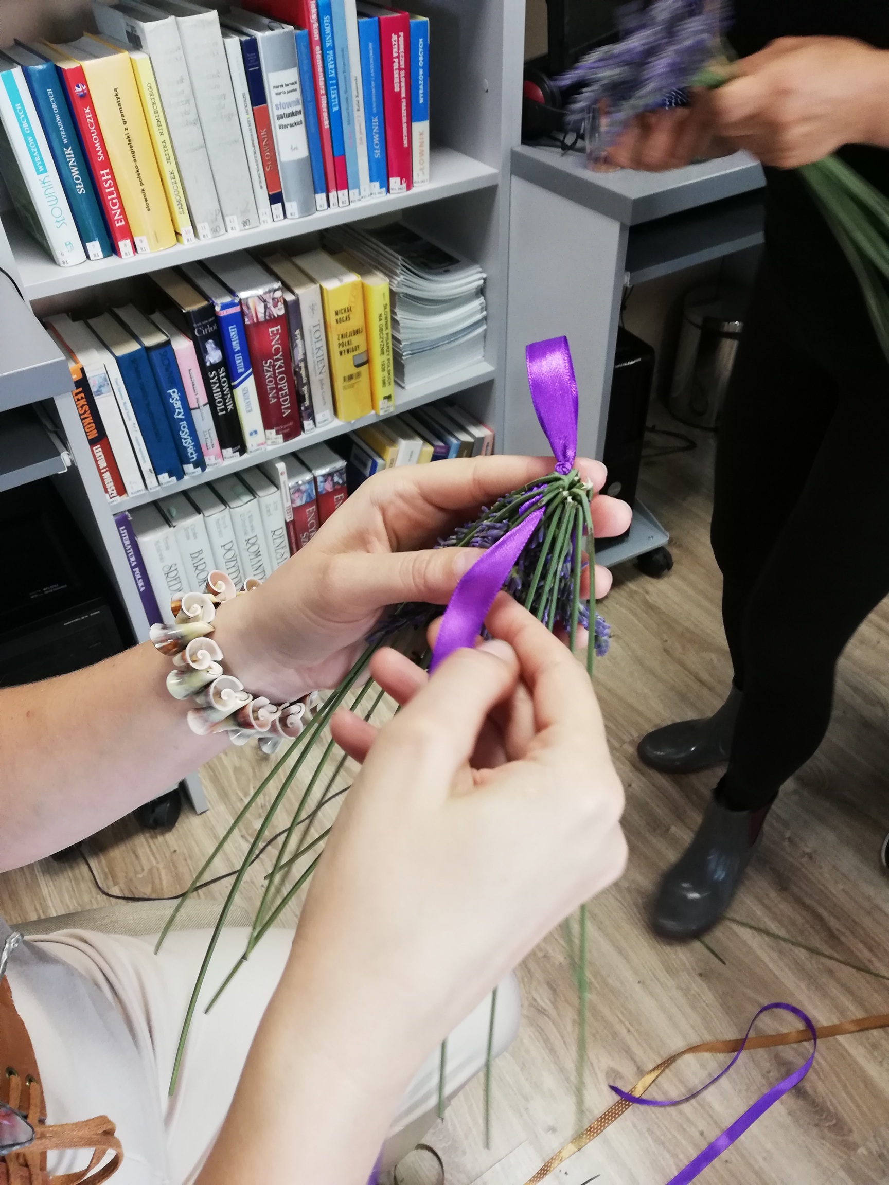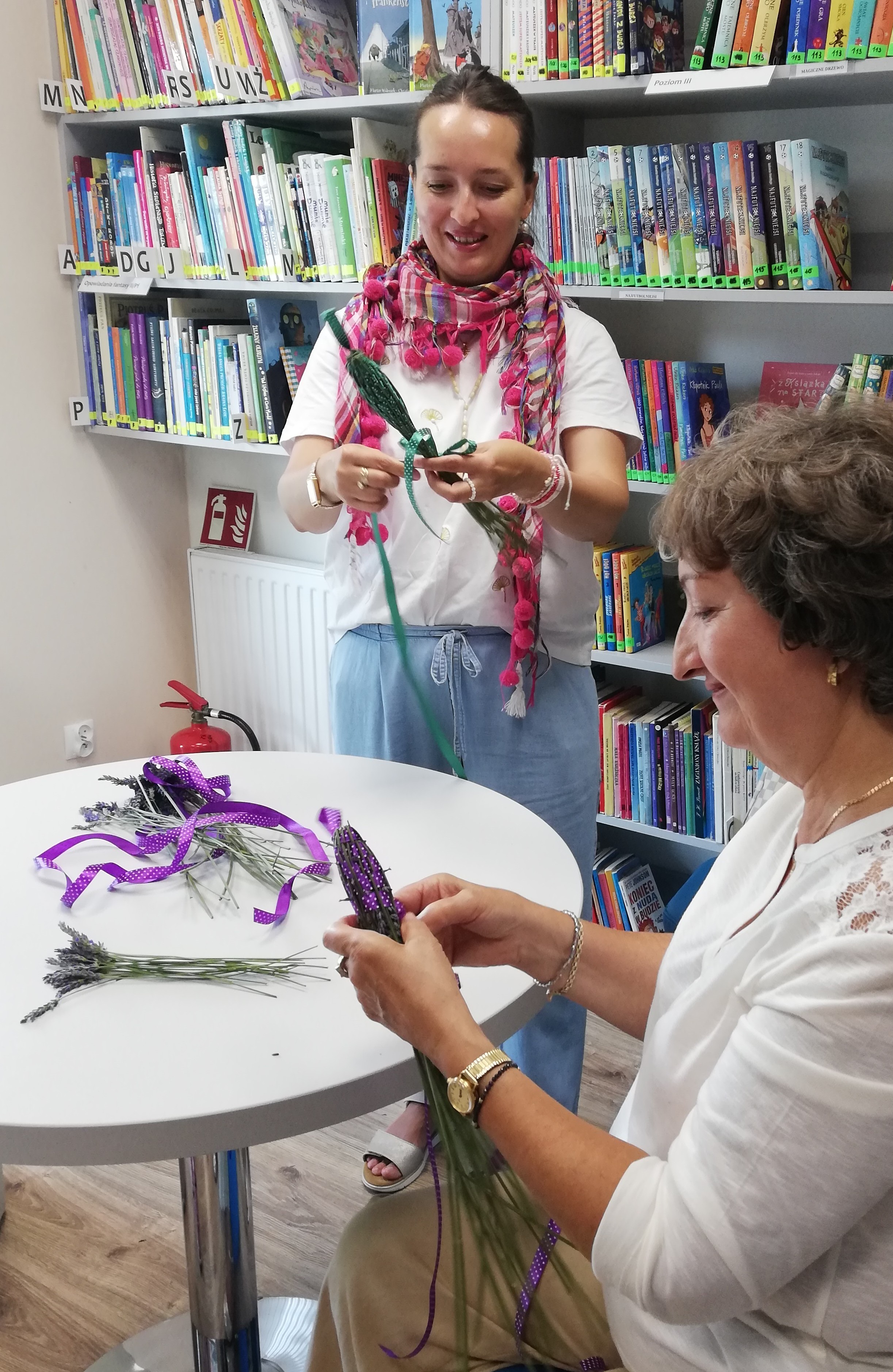 W czwartek 10 lipca br. Filia nr 2 Miejskiej Biblioteki Publicznej w Jarosławiu zamieniła się w prawdziwie pachnący zakątek za sprawą wakacyjnych warsztatów pt: „Lawendowe zaplatanie”. Uczestnicy warsztatów uczyli się, jak z delikatnych kwiatów lawendy stworzyć eleganckie i pachnące fusetki czyli wrzeciona splecione wstążką. Podczas spotkania nie zabrakło uśmiechu, twórczego zaangażowania, rozmów oraz filiżanki aromatycznego naparu z lawendy, który wpisał się w klimat artystycznych warsztatów.