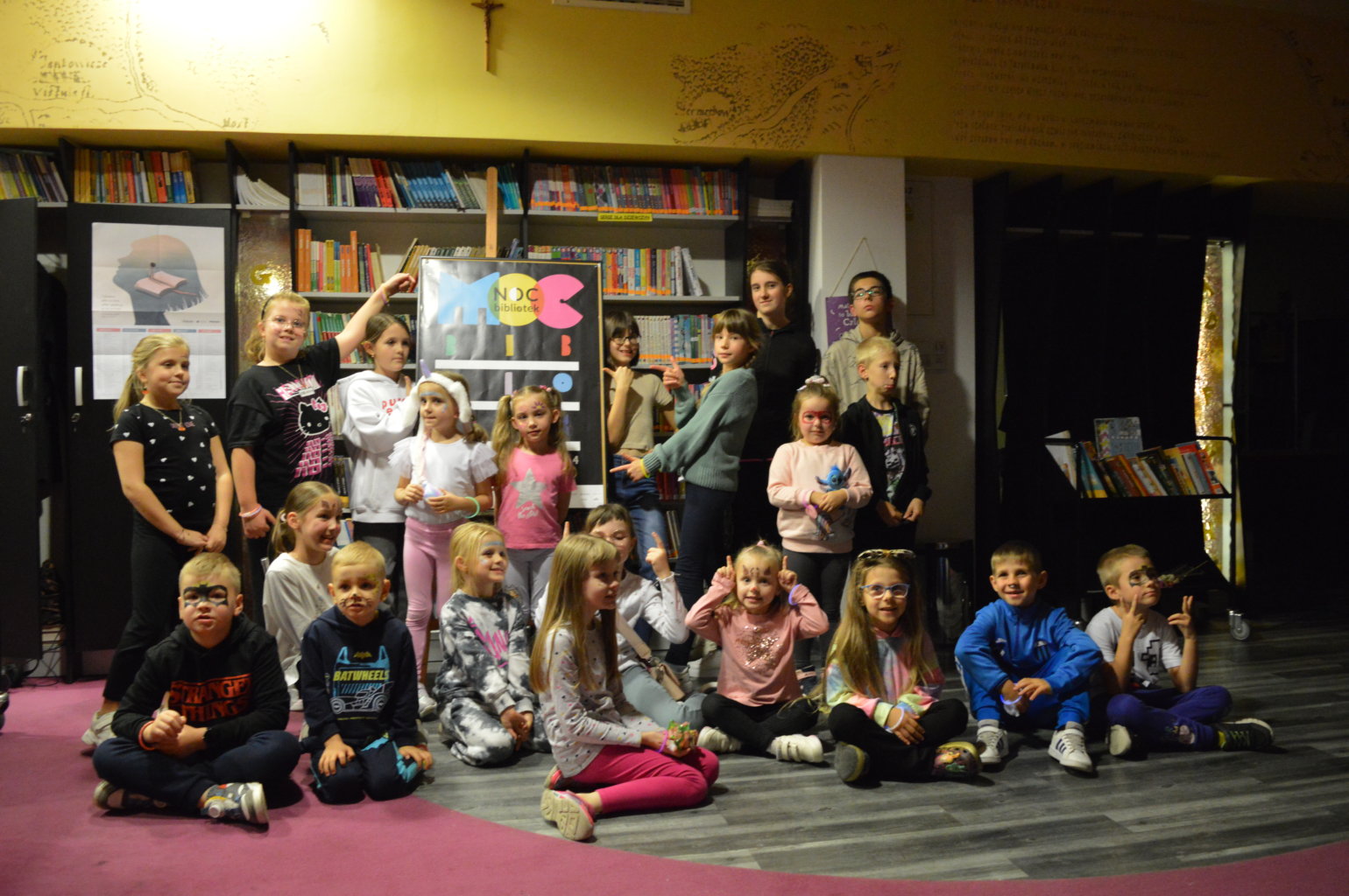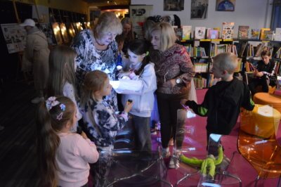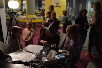 W piątek 11 października bibliotekę spowił mrok tajemnicy. W ramach Nocy Bibliotek przygotowaliśmy dla najmłodszych czytelników wyjątkowe atrakcje. Tegoroczne hasło akcji brzmiało „Moc Bibliotek”. Przy wygaszonym świetle biblioteka zyskała zupełnie nowe oblicze.