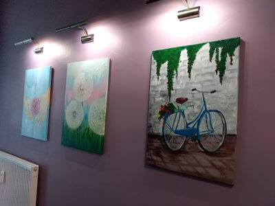 „Zawsze lubiłam rysować i malować, już od najmłodszych lat i tak pozostało do dzisiaj. Nie ukończyłam żadnej szkoły plastycznej, życie pokierowało mnie inaczej, ale malarstwo towarzyszy mi od ponad 10 lat. Malowanie sprawia mi radość i jest chwilą wytchnienia od codziennych spraw. Maluje pejzaże, kwiaty, portrety, zwierzęta i abstrakcje. Preferuję malarstwo farbami olejnymi i akrylowymi na płótnie. Jeśli jest coś co daje Ci radość i satysfakcję to bez względu na efekty – warto.”