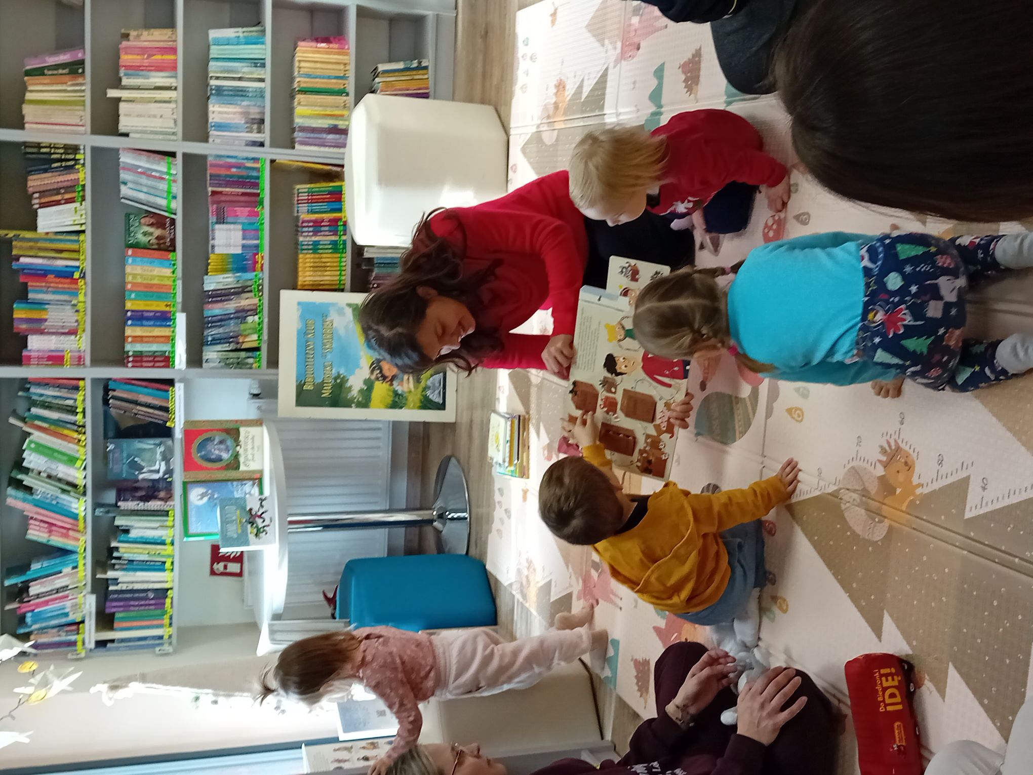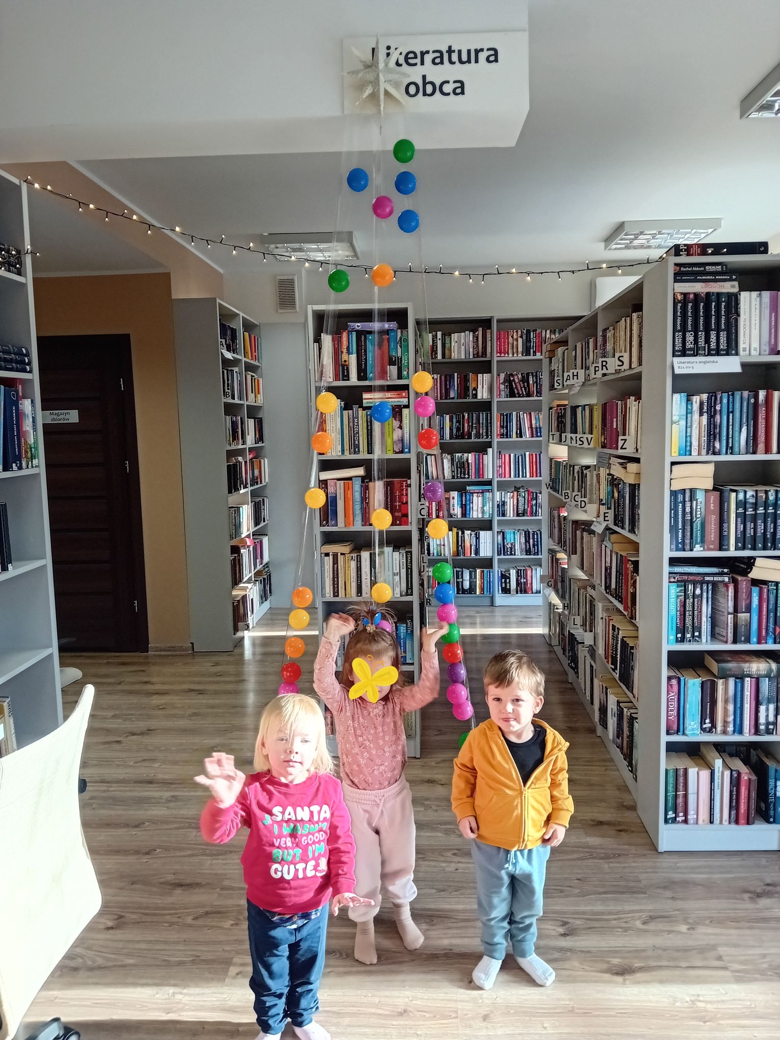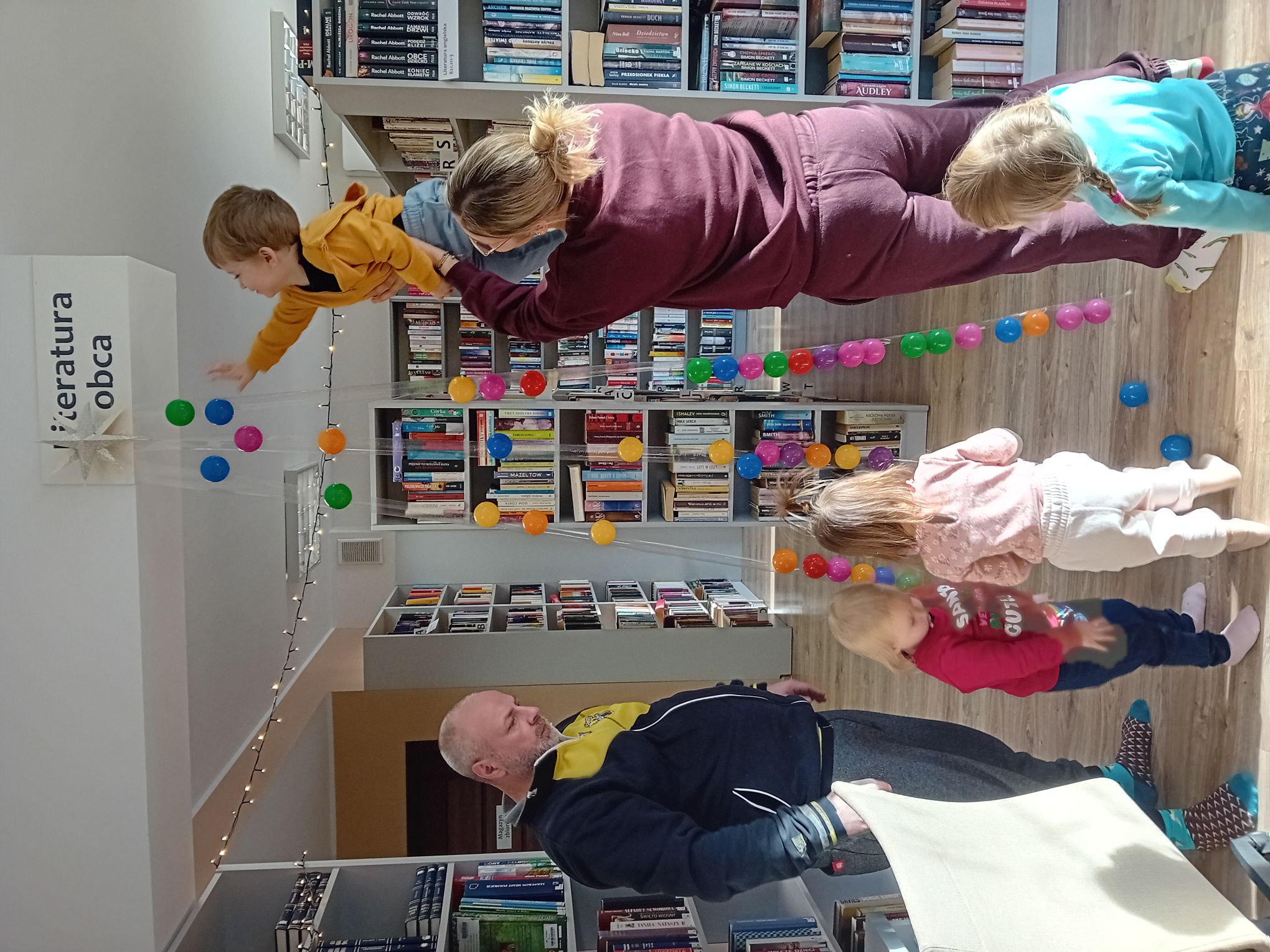 Podczas grudniowego spotkania Bibliotecznego Klubu Maluszka „Skarbek” w Filii nr 2 zapanowała wyjątkowo świąteczna atmosfera. Zajęcia rozpoczęły się wspólnym czytaniem bajki pt. „Boże Narodzenie z Manią i Tyniem”, która wprowadziła dzieci w klimat nadchodzących Świąt. Mali uczestnicy z dużym zainteresowaniem słuchali opowieści, oglądali kolorowe ilustracje w sposób aktywny reagowali na ich treść. Kolejnym elementem spotkania były zimowe wierszyki–masażyki. Rytmiczne utwory i wspólne zabawy sprzyjały rozwojowi sensorycznemu dzieci oraz wzajemnej integracji. Odbyły się również zabawy ruchowe z kolorowymi piłkami. Dzieci przedmuchiwały piłki na drugą stronę stołu, następnie je segregowały według kolorów. Zdobyte „kulki” posłużyły do wspólnego ozdabiania choinki, przynosząc uczestnikom wiele radości i uśmiechu. Na zakończenie spotkania każdy Maluszek ozdobił własną choinkę, malując farbami na kartce. Powstałe prace były bardzo różnorodne i pełne dziecięcej fantazji.
