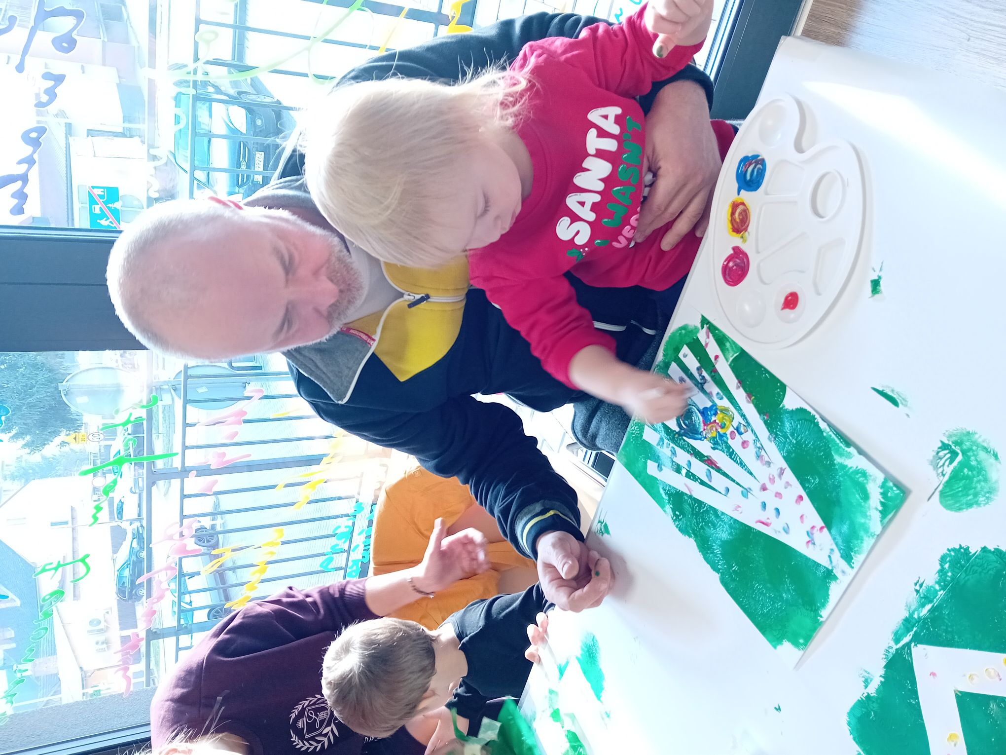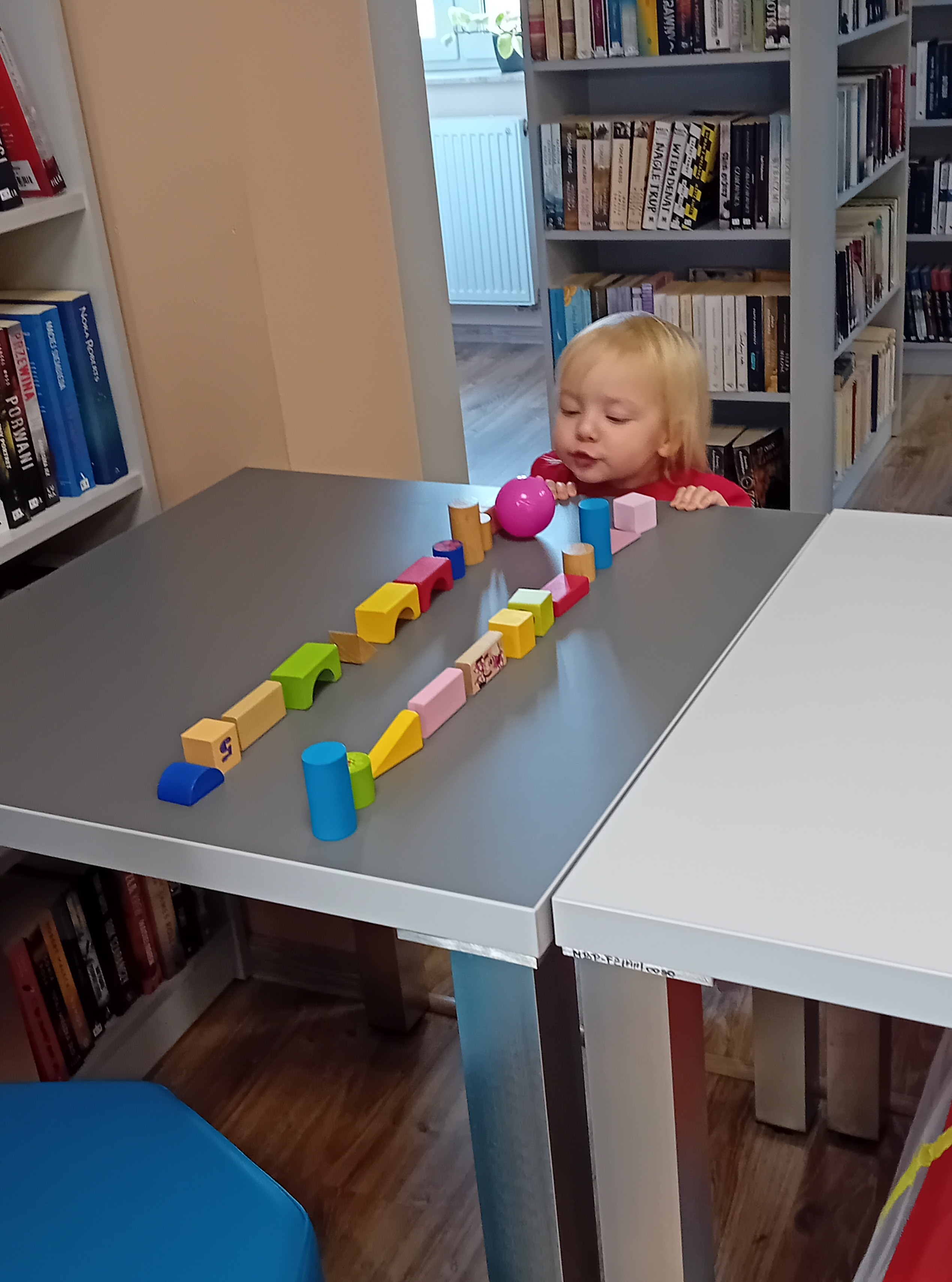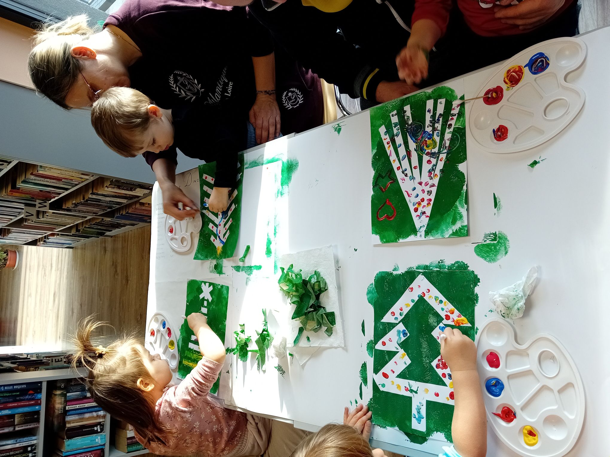 Podczas grudniowego spotkania Bibliotecznego Klubu Maluszka „Skarbek” w Filii nr 2 zapanowała wyjątkowo świąteczna atmosfera. Zajęcia rozpoczęły się wspólnym czytaniem bajki pt. „Boże Narodzenie z Manią i Tyniem”, która wprowadziła dzieci w klimat nadchodzących Świąt. Mali uczestnicy z dużym zainteresowaniem słuchali opowieści, oglądali kolorowe ilustracje w sposób aktywny reagowali na ich treść. Kolejnym elementem spotkania były zimowe wierszyki–masażyki. Rytmiczne utwory i wspólne zabawy sprzyjały rozwojowi sensorycznemu dzieci oraz wzajemnej integracji. Odbyły się również zabawy ruchowe z kolorowymi piłkami. Dzieci przedmuchiwały piłki na drugą stronę stołu, następnie je segregowały według kolorów. Zdobyte „kulki” posłużyły do wspólnego ozdabiania choinki, przynosząc uczestnikom wiele radości i uśmiechu. Na zakończenie spotkania każdy Maluszek ozdobił własną choinkę, malując farbami na kartce. Powstałe prace były bardzo różnorodne i pełne dziecięcej fantazji.