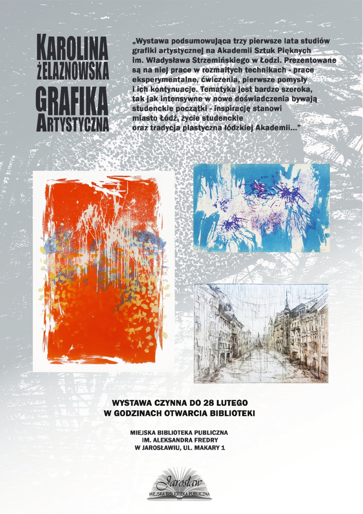 Serdecznie zapraszamy na finisaż wystawy Karoliny Żelaznowskiej pt. „Grafika Artystyczna”, który odbędzie się 28 lutego o godzinie 17:00 w naszej bibliotece przy ulicy ks. Makary 1.
