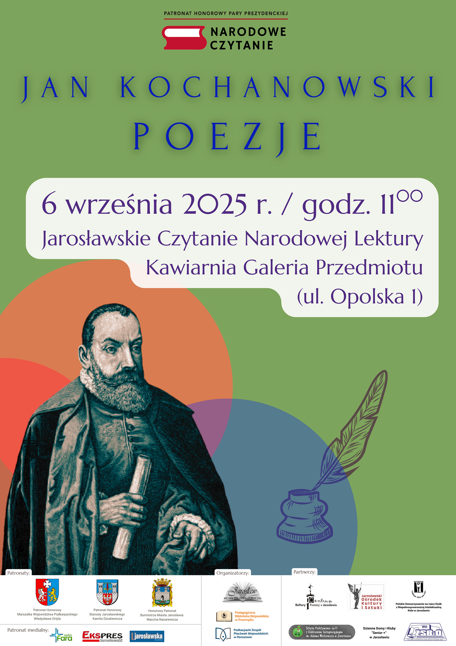 Miasto Jarosław po raz kolejny włącza się do ogólnopolskiej akcji Narodowe Czytanie, która odbywa się pod patronatem Pary Prezydenckiej. W tym roku obchodzimy XIV edycję Narodowego Czytania , którego lekturą są „Poezje” Jana Kochanowskiego.