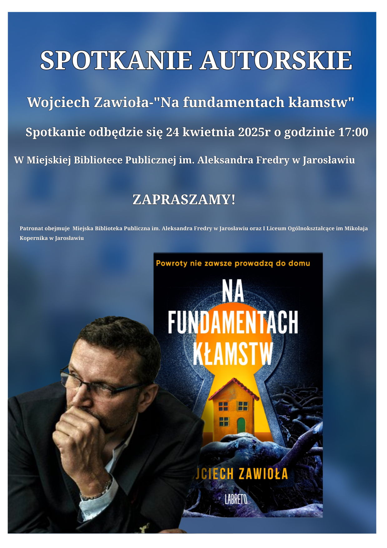 Serdecznie zapraszamy na spotkanie autorskie połączone z promocją książki Wojciecha Zawioły pt. „Na fundamentach kłamstw”, które odbędzie się 24 kwietnia o godzinie 17:00 w Bibliotece Głównej przy ul. Makary 1.