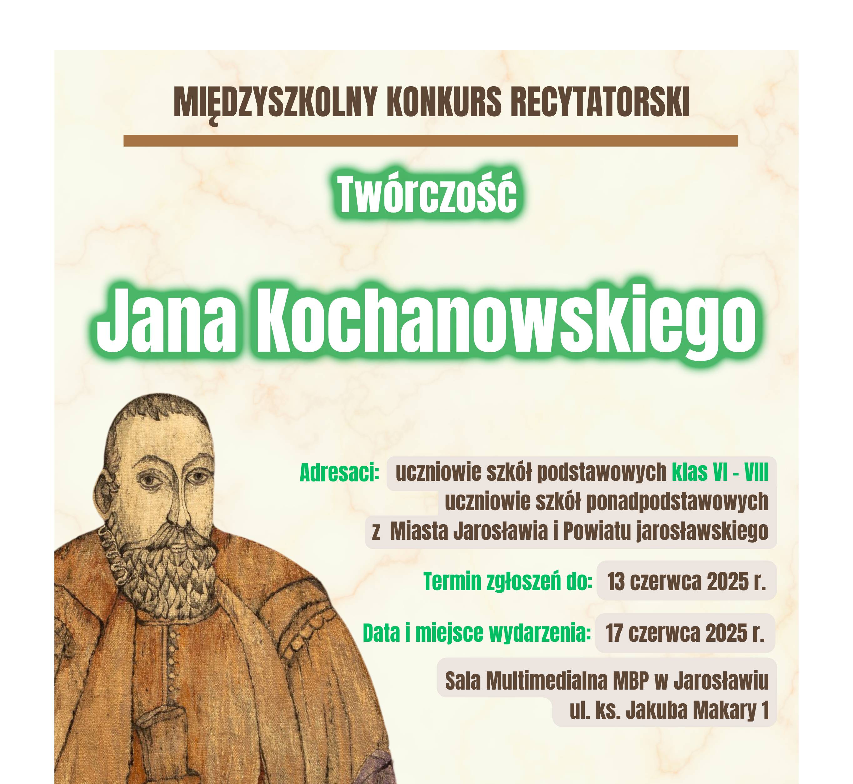 „(…) A sami przedsię bywajmy weseli!” – rozstrzygnięcie konkursu recytatorskiego poświęconego twórczości Jana Kochanowskiego