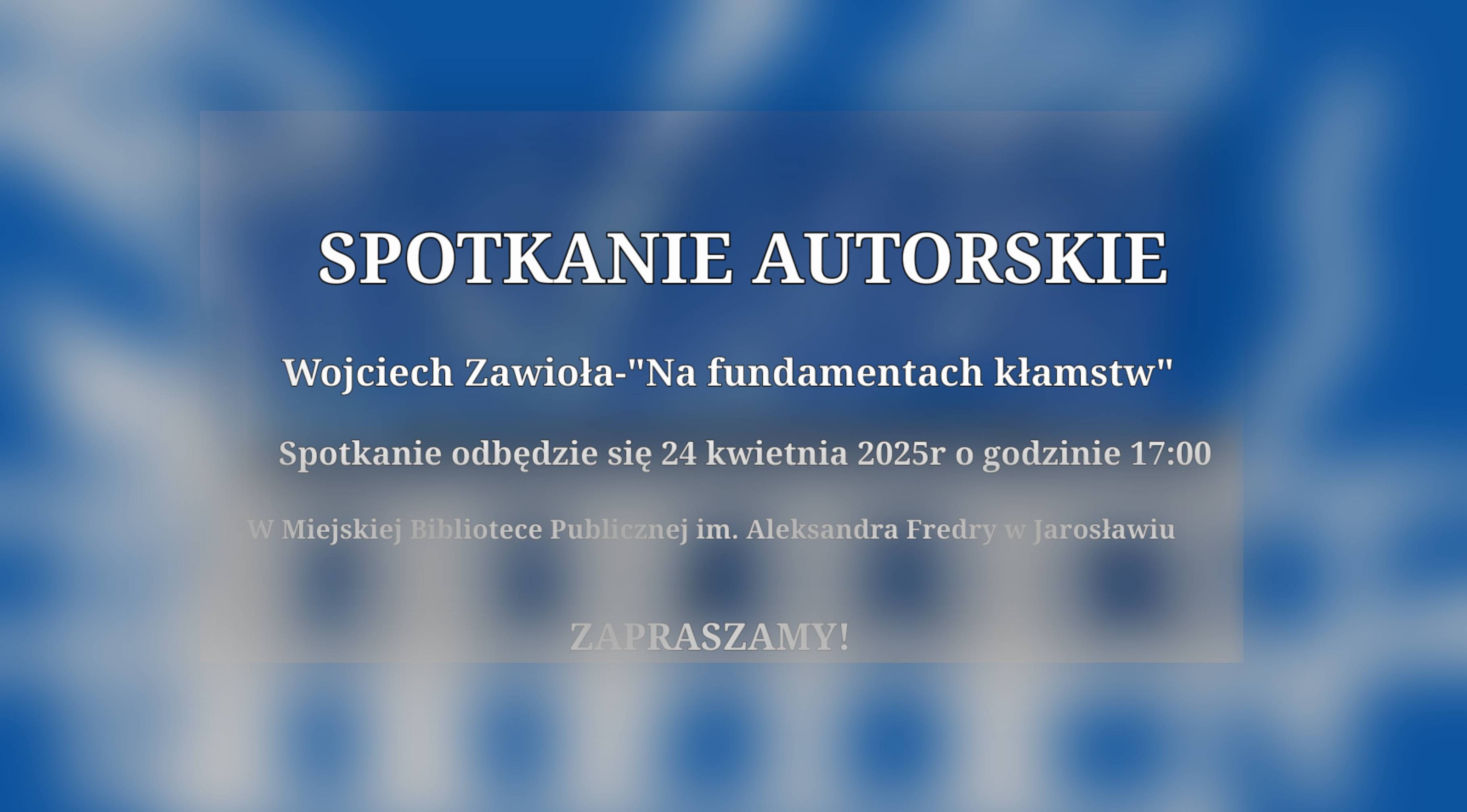 Serdecznie zapraszamy na spotkanie autorskie połączone z promocją książki Wojciecha Zawioły pt. „Na fundamentach kłamstw”, które odbędzie się 24 kwietnia o godzinie 17:00 w Bibliotece… czytaj dalej