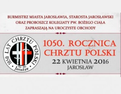 Burmistrz Miasta Jarosławia, Starosta Jarosławski oraz Proboszcz Kolegiaty pw. Bożego Ciała zapraszają na OBCHODY 1050. ROCZNICY CHRZTU POLSKI 22 KWIETNIA 2016 Program uroczystości: Godz…. czytaj dalej